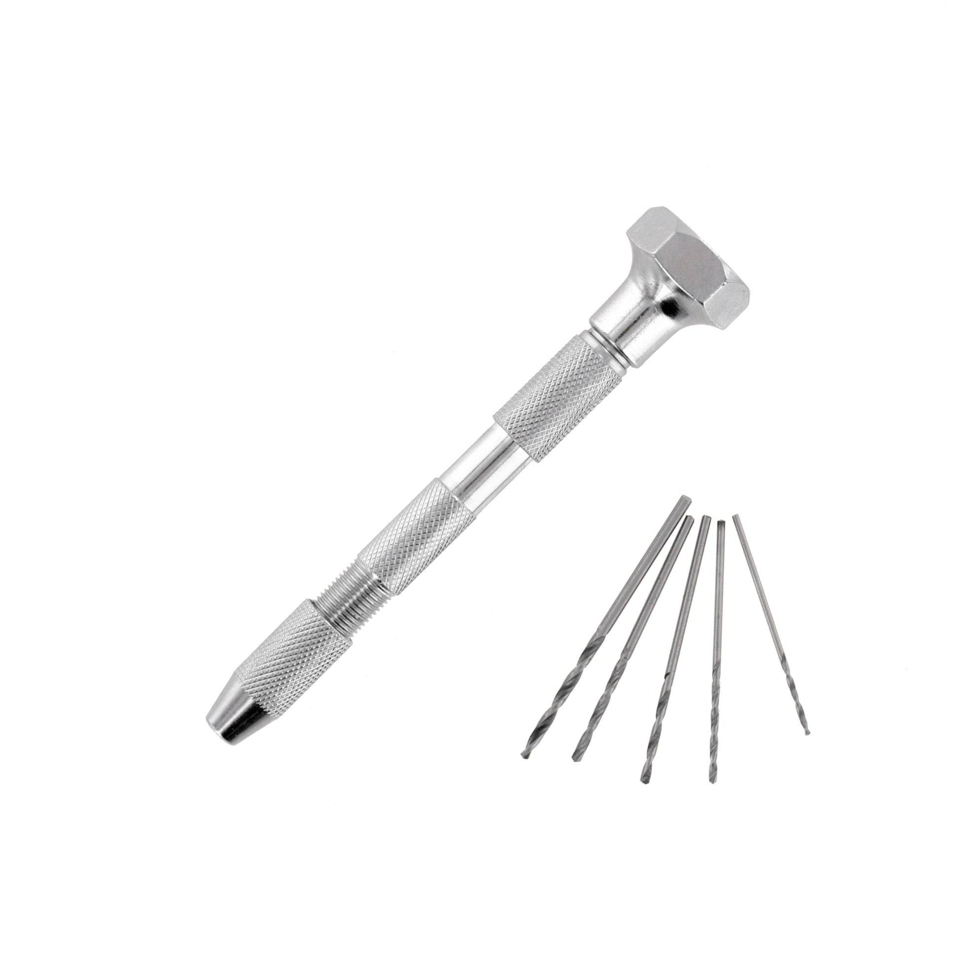 This Pin Vice with 5 precision drill bits is a versatile tool designed for holding drills, taps, pins, and other small accessories. It features two reversible collets with multiple capacity ranges, allowing secure gripping of different bit sizes for detailed hobby, craft, and model-making tasks. Its compact design makes it perfect for delicate work that requires accuracy and steady control.